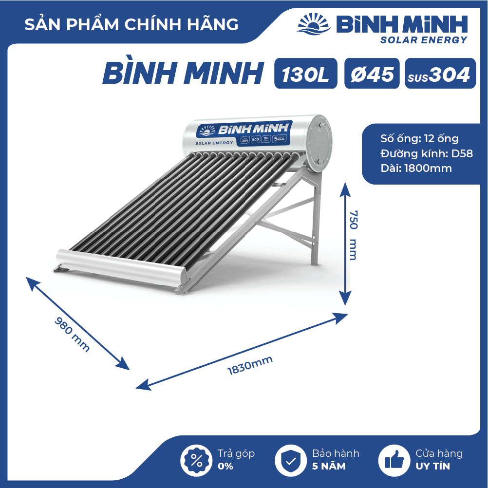 - Dung tích máy: 130 lít - Số lượng ống thu nhiệt: 12