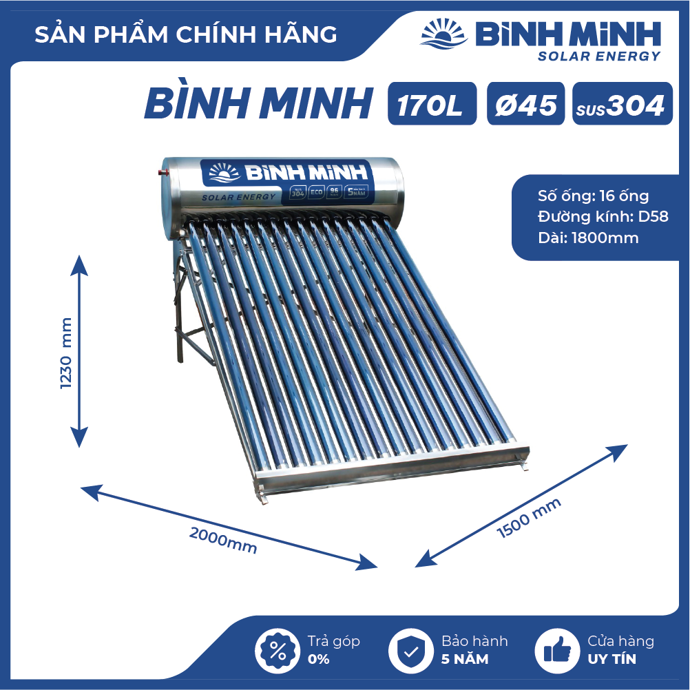 Máy nước nóng năng lượng mặt trời 170L Bình Minh BM-170L