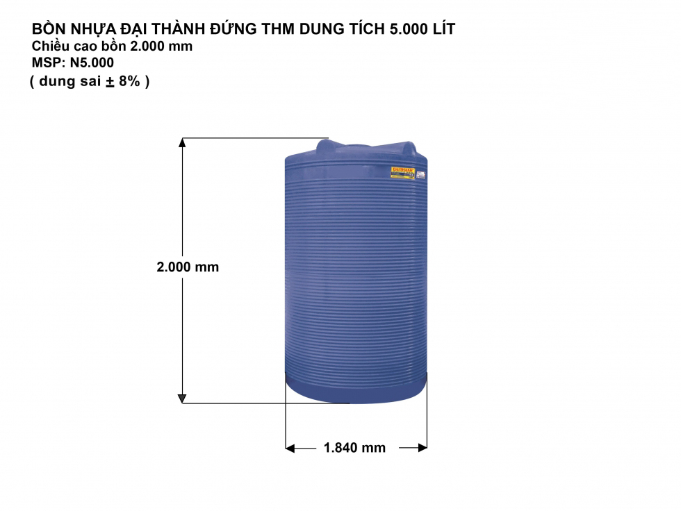 Bản vẽ bình chứa nước Đại Thành 5000 lít đứng thế hệ mới