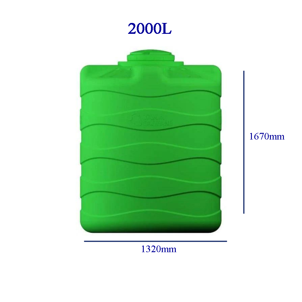 - Mẫu sản phẩm đẹp mắt: Sản phẩm bồn nước nhựa 2000L HDPE được sản xuất bằng công nghệ thổi khuôn (blow moulding) trên dây chuyền máy móc tiên tiến, bề mặt sản phẩm có hoa văn nhám nên sản phẩm hoàn thiện đẹp mắt, cao cấp hơn dòng sản phẩm bồn nhựa bằng công nghệ roto moulding.